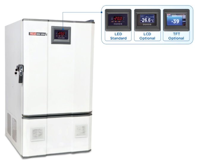 REMI Deep Freezers are specially designed to meet the demanding storage needs of biotechnology, life sciences, clinical research, and pharmaceutical laboratories. They provide reliable preservation of biological samples, medical specimens, vaccines, serums, and blood components. Available in temperature options of –20°C and –40°C, these freezers ensure stable and consistent cooling for sensitive materials. REMI offers both standard and GMP versions, allowing laboratories to choose models that meet regulatory and operational requirements. Built for durability, accuracy, and long-term performance, REMI Deep Freezers deliver dependable sample protection essential for critical research and medical applications. Salient Features: 1)Temperature up to -20°C / -40°C (AC room) 2)Upright models with small foot prints 3)Unique design of thermal barrier for better energy efficiency 4)Machine filled CFC free PUF insulation to eliminate void pockets 5)Adjustable trays 6)Hermetically sealed Compressor with CFC free refrigerant 7)Alarms for high/low set parameters 8)Sensor failure alarm 9)Electrical circuit breaker 10)Time delay for compressor switch on 11)Overload cut off relay for compressor 12)Rounded inner chamber for easy cleaning 13)Attractive door profile 14)Microprocessor controller with LED display of Temperature with set, process value & audio visual alarm (standard) 15)Weight carrying capacity of each tray : 30 Kg Uniformly distributed 16)Auto door closer 17)Smart Handle with LED door closure indication Optional“ 1)4″ LCD display with additional features (Details overleaf) 2)Touch screen display ( TFT ) with additional features(Details overleaf) 3)Validation protocol with IQ, OQ, PQ Documentation 4)Port for calibration probes / safety back up For More Details, Specifications Kindly Contact Remi !